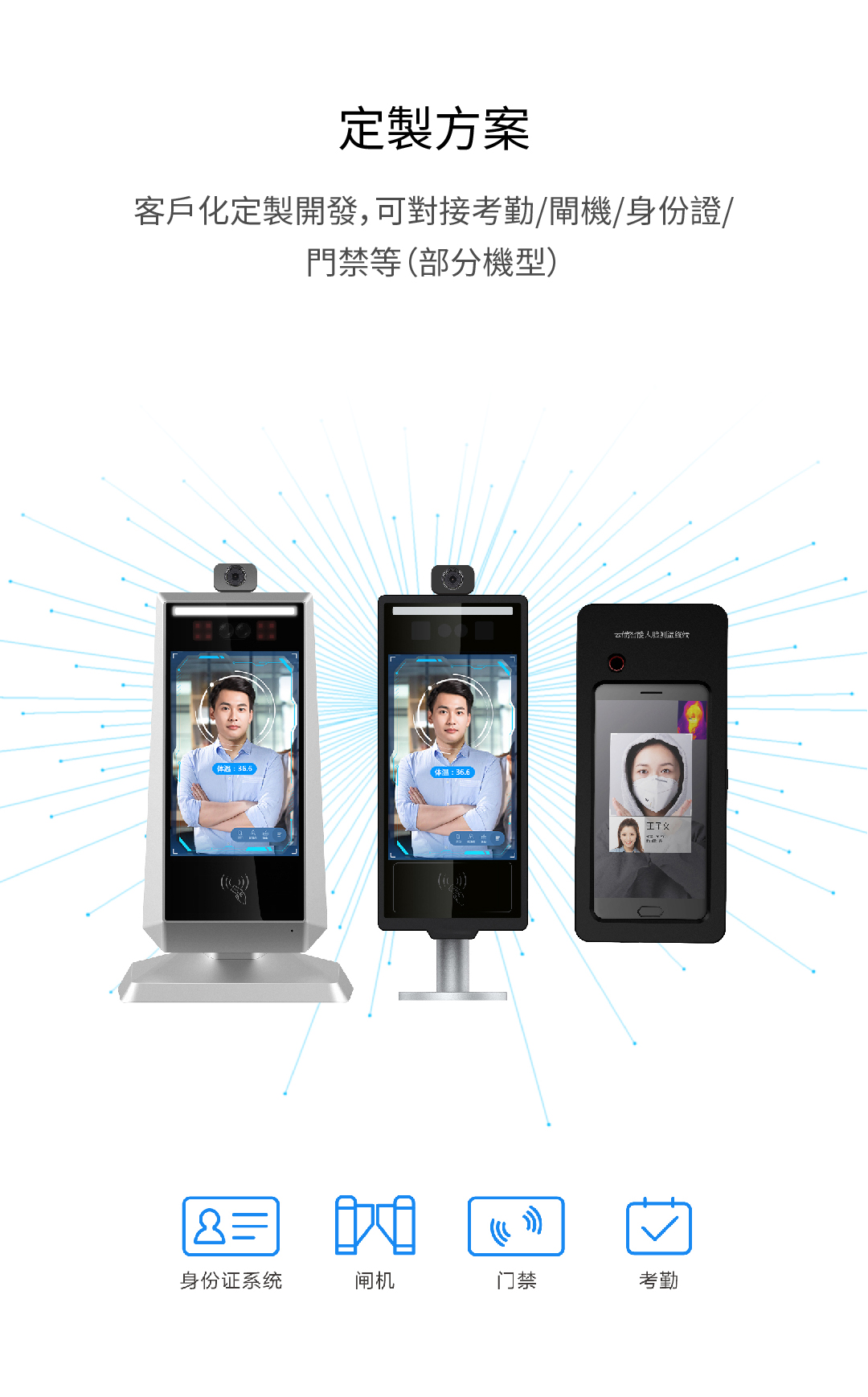 客戶化定製開發,可對接考勤/閘機/身份證/